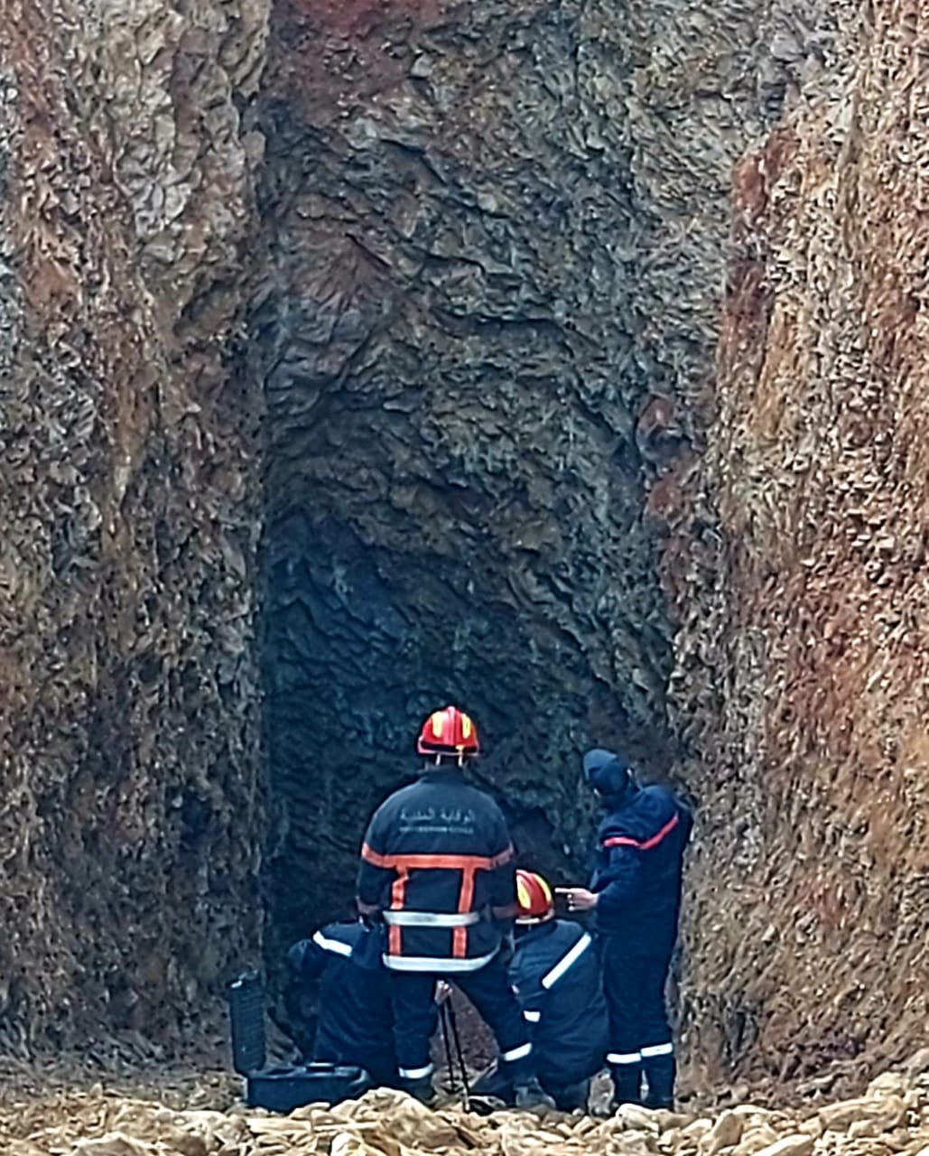 وصل فريق الانقاذ من خبراء المناجم ومهندسين طبوغرافيين إلى الممر الأفقي من الثقب المائي حيث يوجد الطفل “ريان”.
