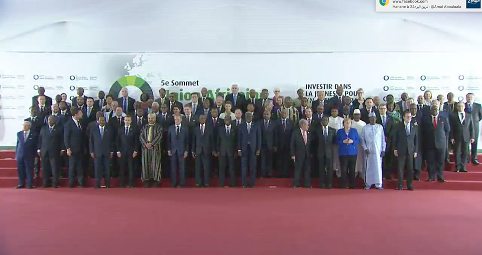 في مشهد غير مسبوق في تاريخ قضية الصحراء، جمعت صورة تذكارية لقادة القمة الاوروبية الافريقية الخامسة بالعاصمة الافوارية أبيدجان بين الملك محمد السادس وزعيم جبهة البوليساريو إبراهيم غالي، حيث يظهر الملك في الصف الأول بجانب الرئيس الفرنسي والرئيس الافواري المحتضن للقمة، فيما يقبع غالي في الصف الثالث قبالة الملك.