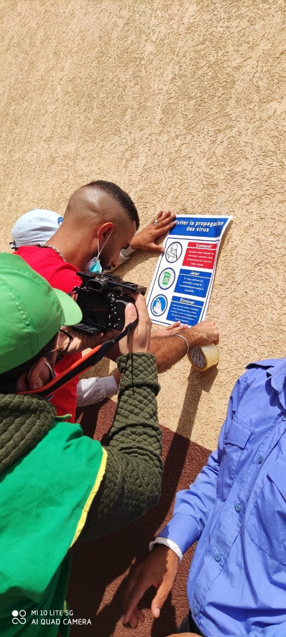 بالإضافة إلصاق ملصقات توعوية وتوجيهية بجل مرافق المدرسة خاصة بالتباعد الاجتماعي، احترام مسافة الأمان والمداومة على النظافة،