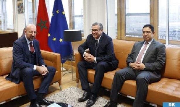 بحضور وزير الشؤون الخارجية والتعاون الإفريقي والمغاربة المقيمين بالخارج، ناصر بوريطة أجرى رئيس الحكومة، عزيز أخنوش، اليوم الأربعاء ببروكسيل، مباحثات مع رئيس مجلس الاتحاد الأوروبي، شارل ميشيل.