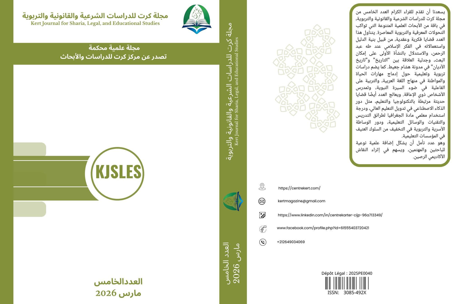 تتشرف مجلة كرت للدراسات الشرعية والقانونية والتربوية بإصدار عددها الخامس (السنة الثانية / 2026)، الذي يضم باقة متميزة من الأبحاث العلمية الرصينة التي تواكب التحولات المعرفية والتربوية المعاصرة.