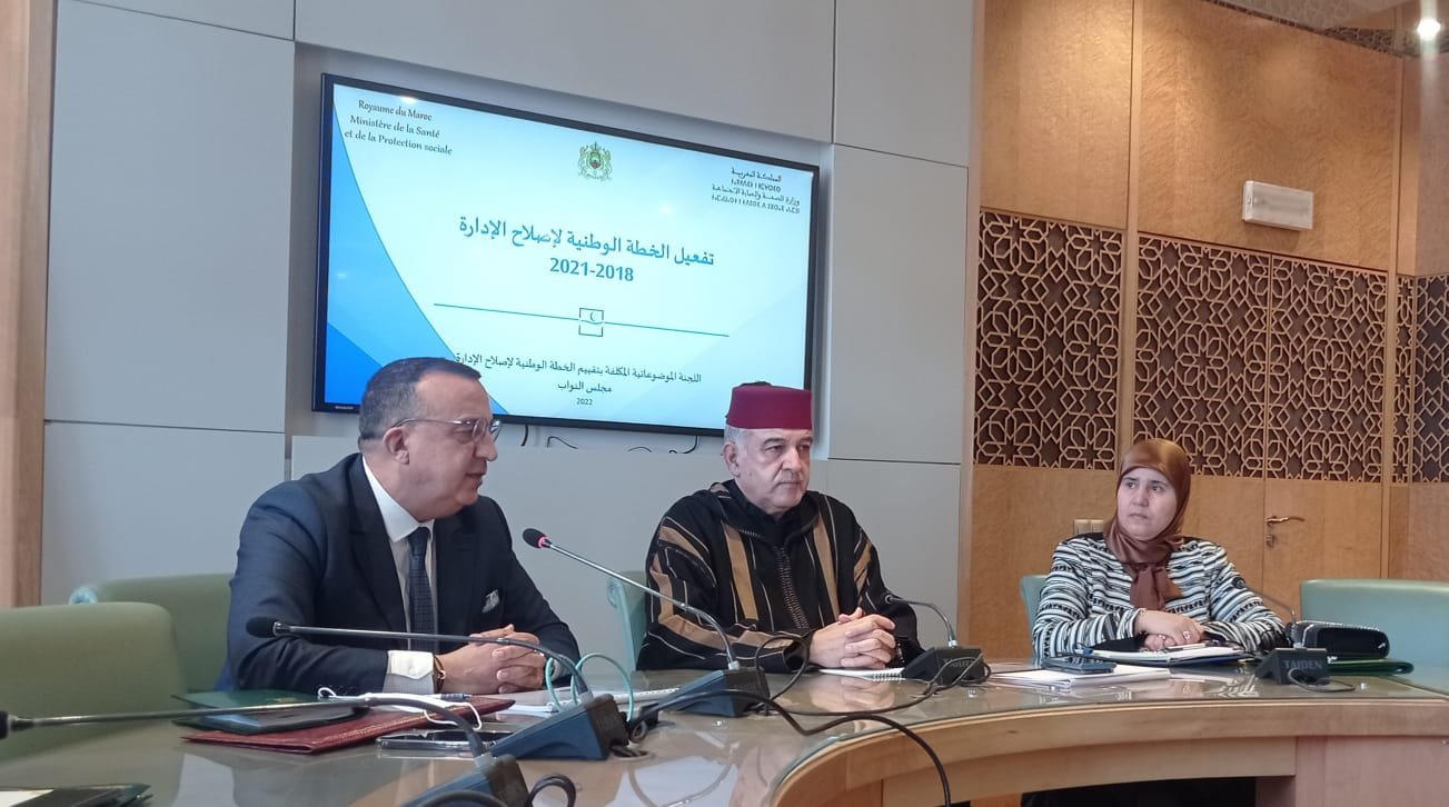 وأكد الكاتب العام لوزارة الصحة والحماية الإجتماعية، خلال تقديمه لعرض أمام أعضاء مجموعة العمل الموضوعاتية المكلفة بتقييم الخطة الوطنية لإصلاح الإدارة 2018-2021، اليوم الثلاثاء 26 أبريل الجاري، أن من بين أهم محاور إصلاح المنظومة الصحية، تثمين الموارد البشرية من خلال الشروع في إحداث وظيفة صحية، والتي سيتم من خلالها الاحتفاظ بالمقتضيات الأساسية المشتركة التي يتمتع بها الموظفون العاملون بإدارات الدولة وبالمرافق العمومية وسينضاف إليه جانب تحفيز الموارد البشرية.