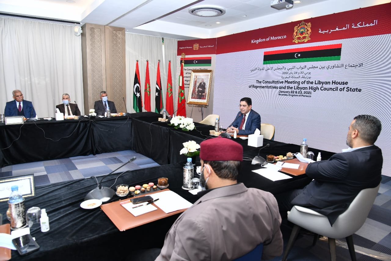 توصل فريقا الحوار بمجلس النواب ومجلس الدولة، قبل قليل، خلال مشاوراتهم بمنتجع بوزنيقة المغربية التي دامت أمس واليوم 22 و23 يناير الجاري، إلى اتفاق بشأن اختيار المناصب الليبية السيادية، متوجهين بجزيل الشكر وموفور الثناء و خالص الامتنان والتقدير للملك محمد السادس وللحكومة والشعب المغربي على رعاية هذه المشاورات والدعم المستمر لجهود تحقيق الاستقرار في ليبيا.