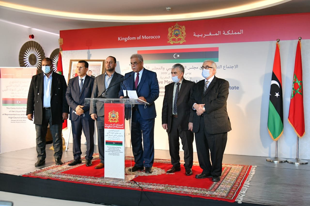 توصل فريقا الحوار بمجلس النواب ومجلس الدولة، قبل قليل، خلال مشاوراتهم بمنتجع بوزنيقة المغربية التي دامت أمس واليوم 22 و23 يناير الجاري، إلى اتفاق بشأن اختيار المناصب الليبية السيادية، متوجهين بجزيل الشكر وموفور الثناء و خالص الامتنان والتقدير للملك محمد السادس وللحكومة والشعب المغربي على رعاية هذه المشاورات والدعم المستمر لجهود تحقيق الاستقرار في ليبيا.