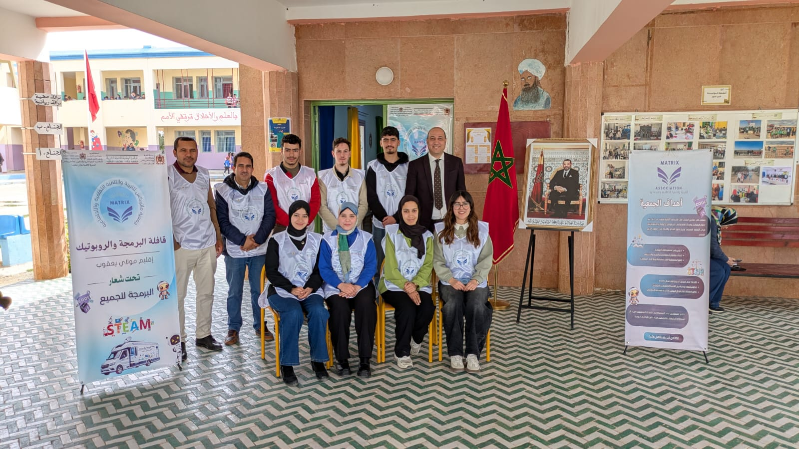 برز دور جمعية ماتريكس للتربية والتنمية الثقافية والاجتماعية كشريك فاعل وأساسي في هذا المسار. حيث لم يقتصر دور الجمعية على الجانب التنظيمي، بل امتد ليشمل المواكبة الميدانية والتأطير التربوي، مؤكدة على أهمية تضافر جهود المجتمع المدني مع المنظومة التربوية. وقد ساهمت الجمعية بشكل فعال في تذليل الصعاب وتوفير الدعم المعنوي واللوجستيكي للفريق، مما مكن الأستاذين المؤطرين، السيد عبد الرزاق اشتيوي والسيد عبد الحكيم بلقاضي، من التركيز على الجوانب التقنية والإبداعية للتلاميذ.