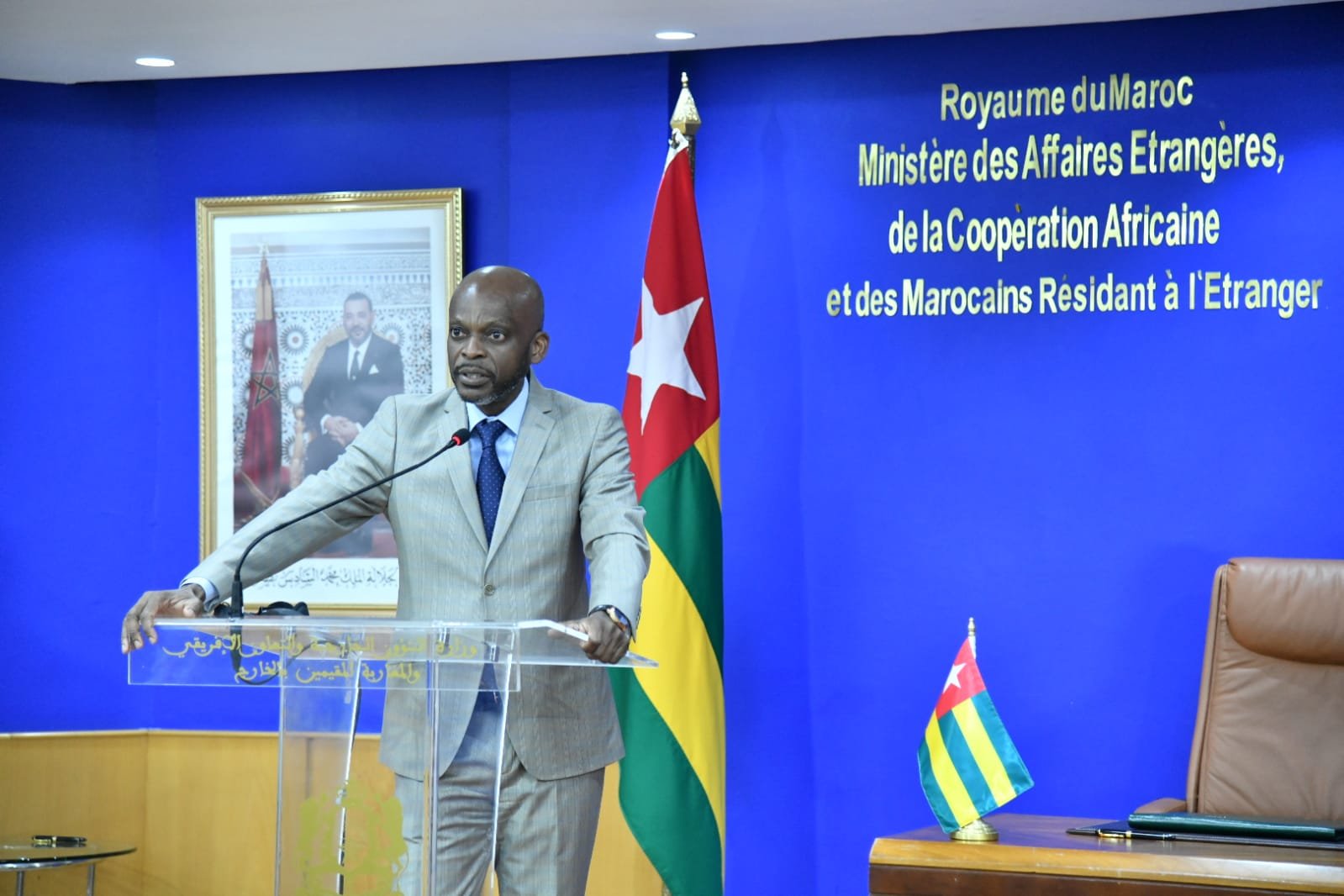وقال دوسيي “إن هذه الخطوة تأتي لتترجم مرة أخرى الدعم المتواصل لجمهورية الطوغو للوحدة الترابية للمملكة المغربية والروابط القوية التي تجمع بين قائدي البلدين صاحب الجلالة الملك محمد السادس وشقيقه فخامة السيد فور غناسينغبي، رئيس جمهورية الطوغو”.