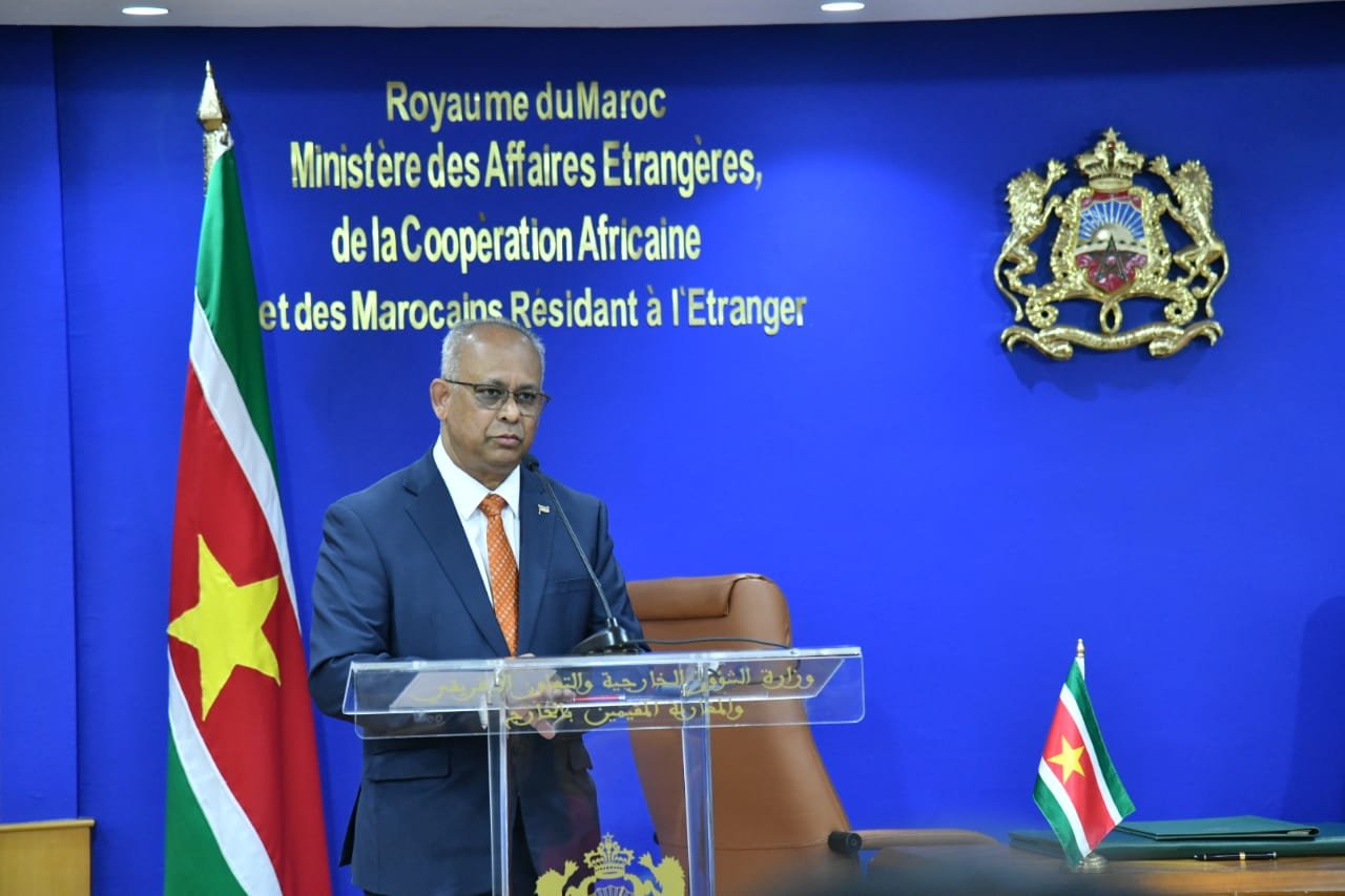 كما أعرب رئيس الدبلوماسية السورينامية عن دعمه القوي لسيادة المغرب على صحرائه ووحدته الترابية.