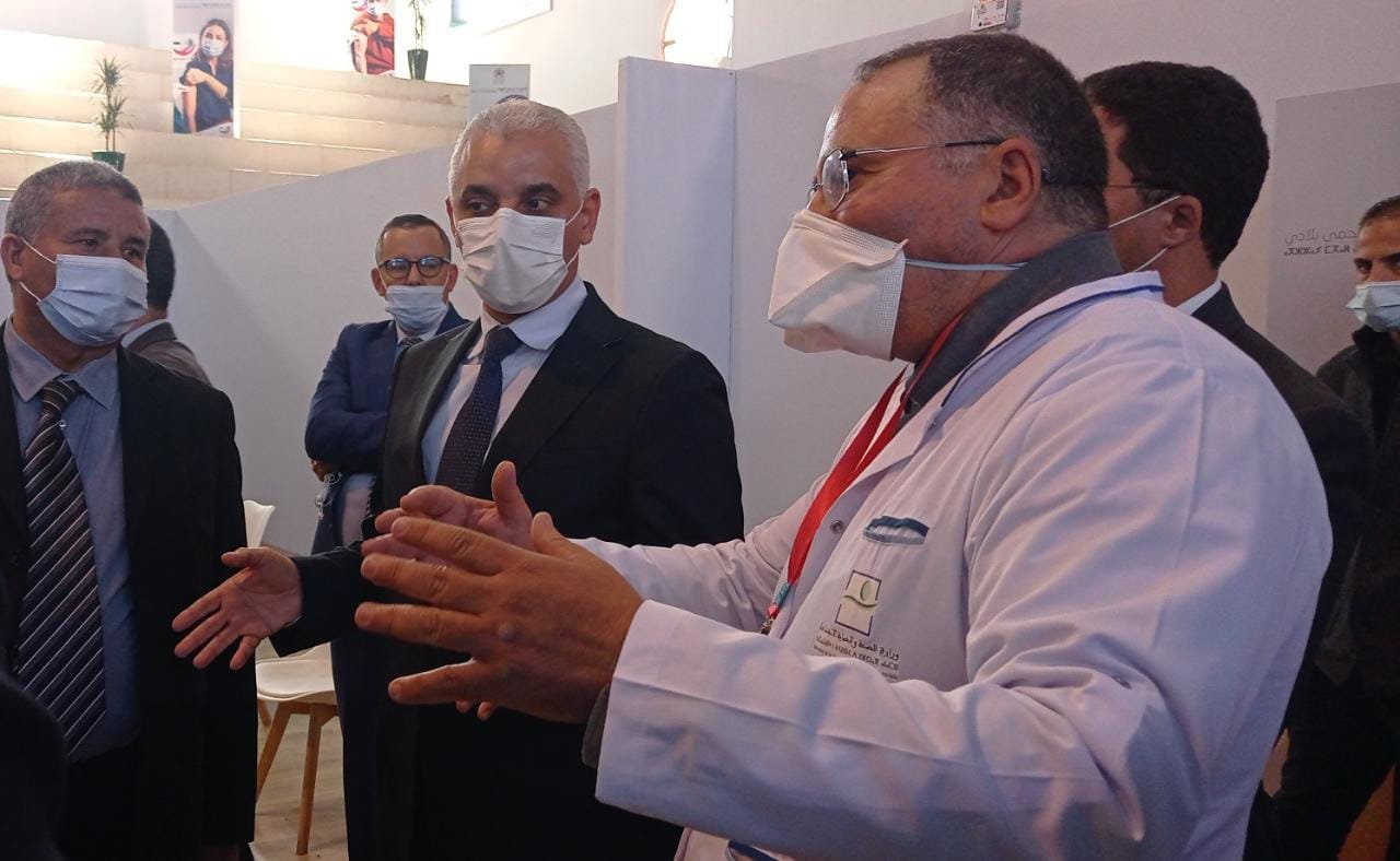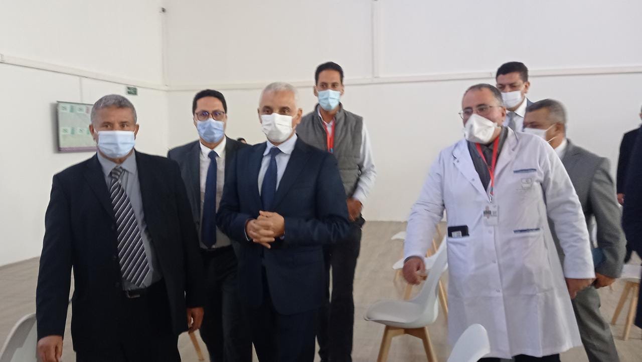 وخلال هذه الزيارة، اطلع وزير الصحة والحماية الإجتماعية، الذي كان مرفوقا على الخصوص، بوالي جهة فاس مكناس ووفد هام، على مجريات الحملة الوطنية للتلقيح ضد “كوفيد-19” بالمركز المقام على مساحة تبلغ 1100 متر مربع بدائرة زواغة، والذي سيمكن من تلقيح حوالي 5000 مستفيد يوميا، ومن رقمنة مسار عملية التلقيح الوطنية بأكملها بفضل نظام معلوماتي يسمح بتحديد هوية المواطنات والمواطنين وتسجيلهم، مرورا بالكشف المخبري عن الفيروس، فضلا عن تتبع وتيرة عملية التلقيح بشكل يومي.