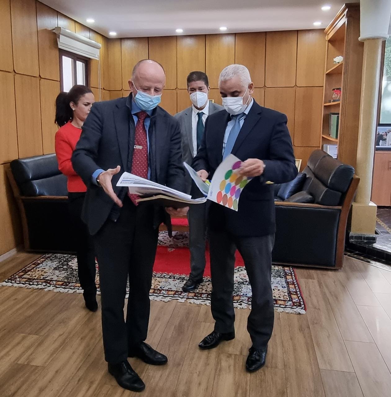 عقد خالد آيت الطالب وزير الصحة والحماية الاجتماعية، اليوم (الثلاثاء 16 نونبر)، لقاء عمل مع وفد عن المفوضية السامية للأمم المتحدة لشؤون اللاجئين، تمحور أساسا حول مخطط الوزارة لتلقيح اللاجئين المتواجدين فوق التراب الوطني ضد فيروس “كوفيد 19″،