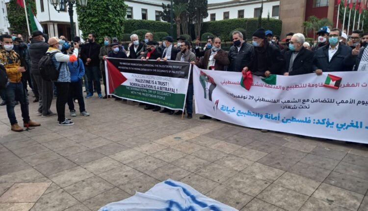 بمناسبة اليوم العالمي للتضامن مع الشعب الفلسطيني، نظم 55 تنظيما مغربيا وقفة احتجاجية يومه الأحد29 نونبر 2020 في حدود الساعة الخامسة مساء أمام مبنى البرلمان بالرباط.