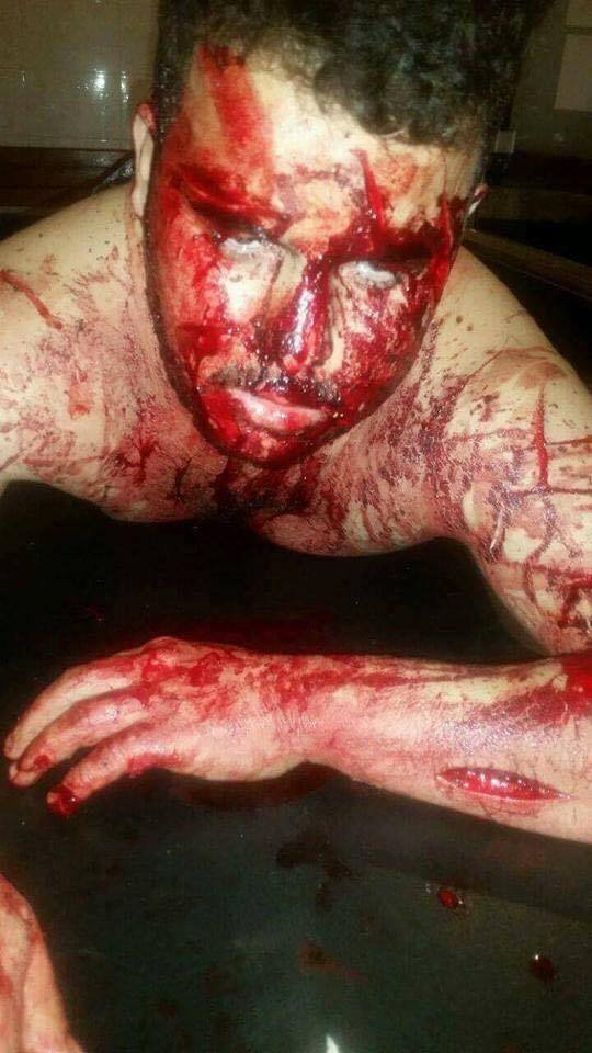 وأظهرت مجموعة من الصور المنتشرة عبر وسائل التواصل الاجتماعي، الشاب مدرجا في دمائه بعدما تعرض لهذا الحادث الإجرامي.
