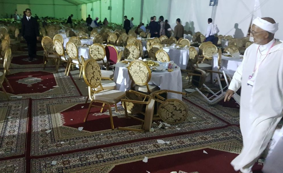 وشهدت قاعة العشاء بالمركب الرياضي الأمير مولاي عبد الله بالرباط الذي شهد أشغال المؤتمر الوطني السابع عشر، تراشق بالموائد والكراسي والصحون بين أنصار شباط ونزار، ما أودى بسقوط إصابات وجرحى تم حملهم إلى المستشفى لتلقي العلاجات الضروروية.